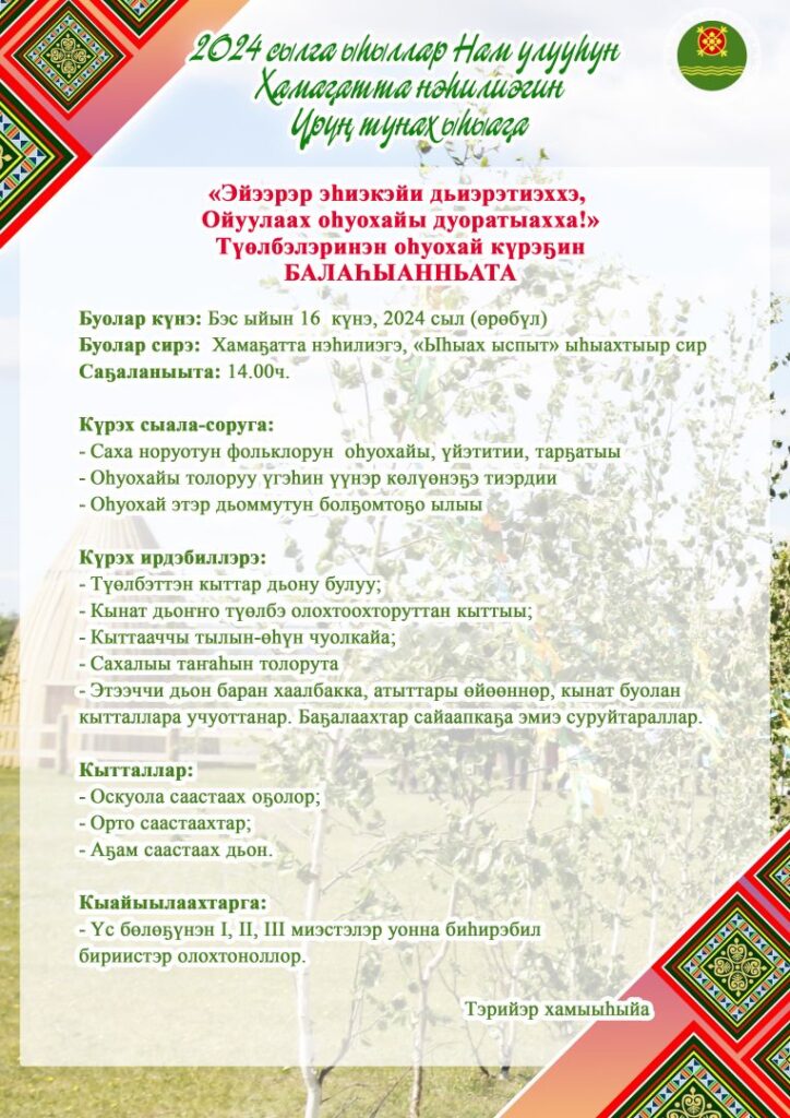 2024 сылга ыһыллар Нам улууһун Хамаҕатта нэһилиэгин